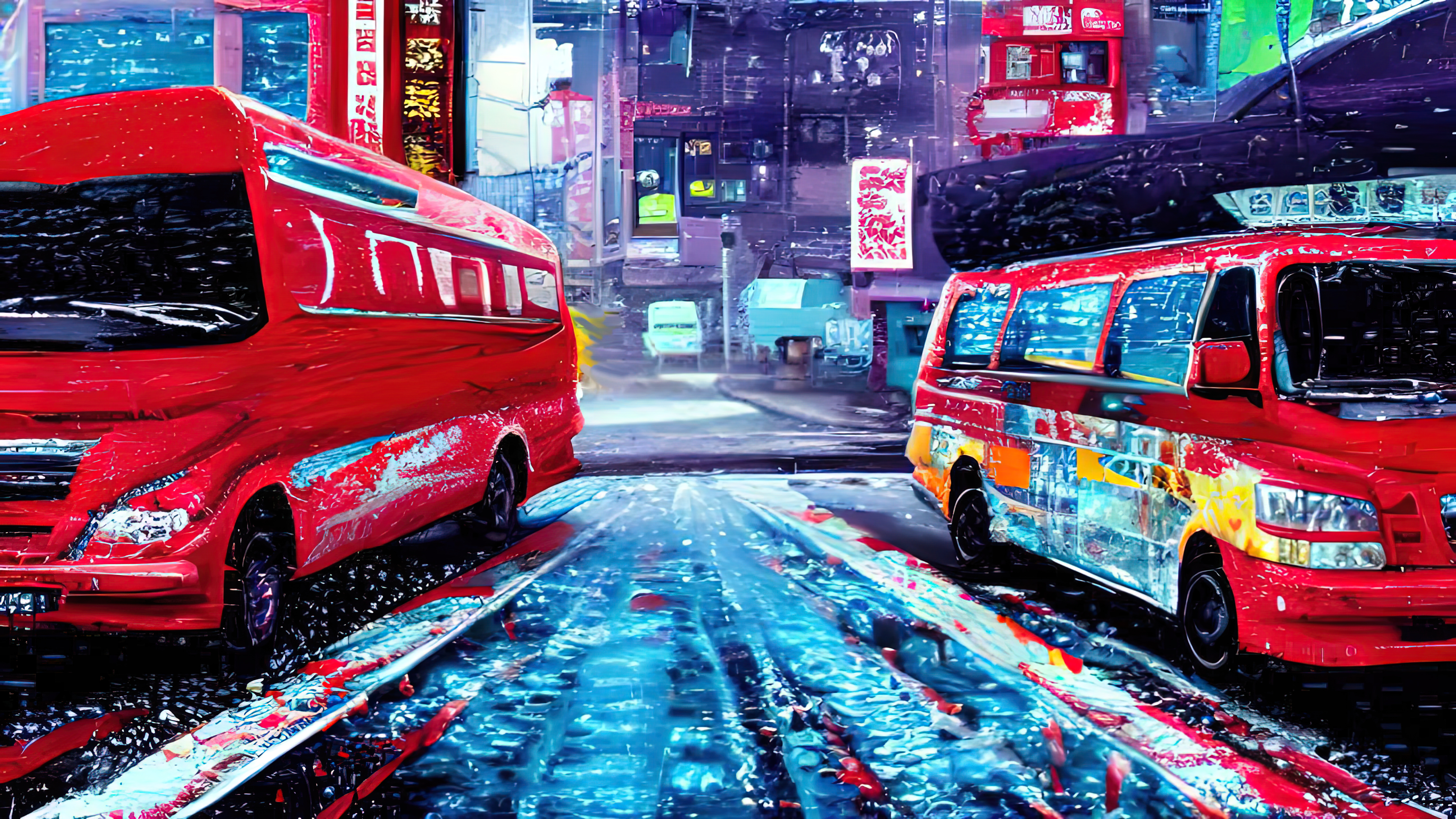 It is the year 1010AH (After Humanity). We are long gone. But life continues. The autonomous trains, buses, and cars created by us have become a new species that calls itself Mobility. Seasons of Mobility was created in the aesthetic tradition of wabi-sabi, which identifies beauty in the imperfect, the impermanent, and the incomplete. The colours and scenes invoke the four seasons across a full year. Each piece reflects everyday life in a future that is both familiar and surreal.