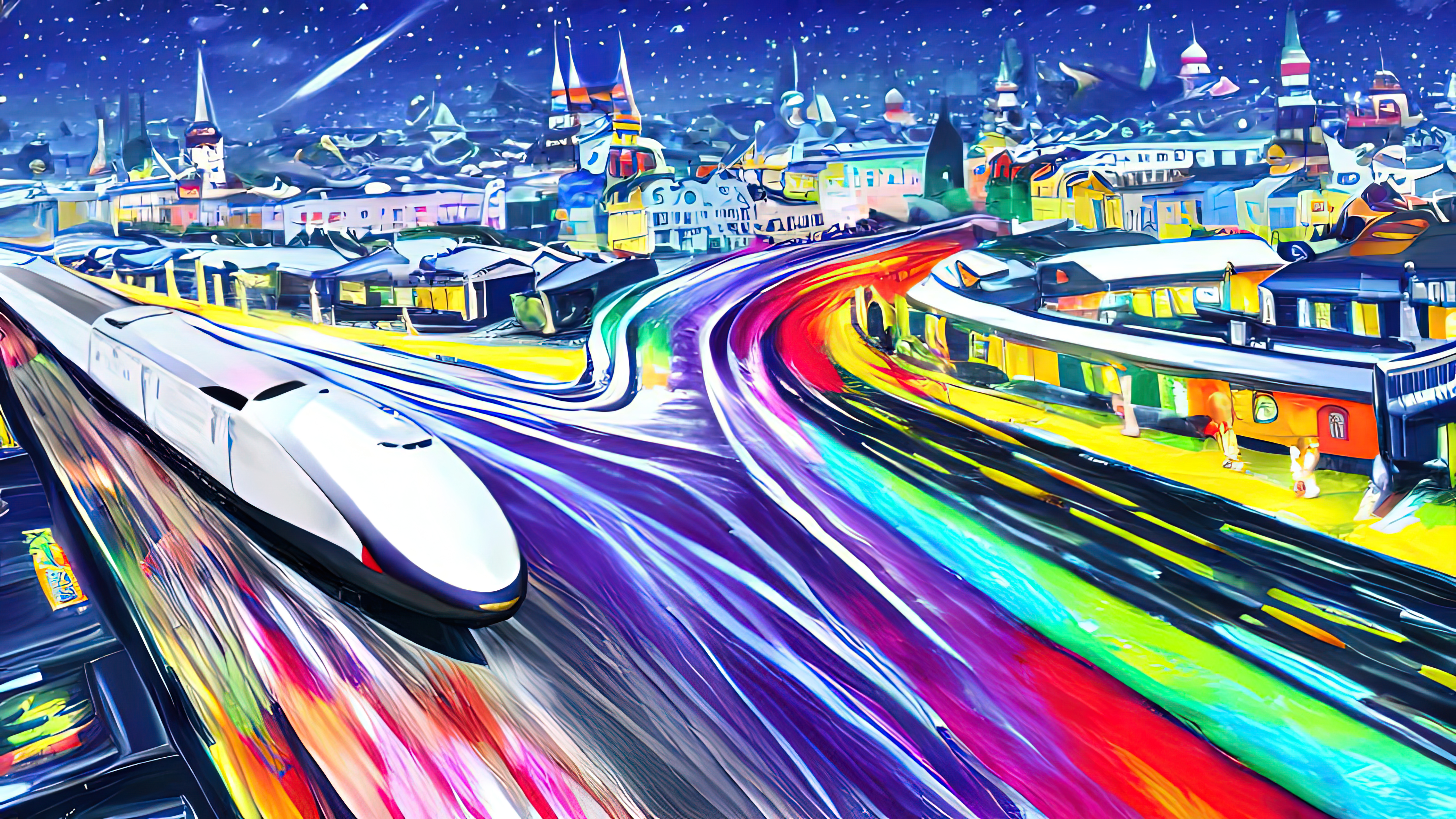 It is the year 1010AH (After Humanity). We are long gone. But life continues. The autonomous trains, buses, and cars created by us have become a new species that calls itself Mobility. Seasons of Mobility was created in the aesthetic tradition of wabi-sabi, which identifies beauty in the imperfect, the impermanent, and the incomplete. The colours and scenes invoke the four seasons across a full year. Each piece reflects everyday life in a future that is both familiar and surreal.