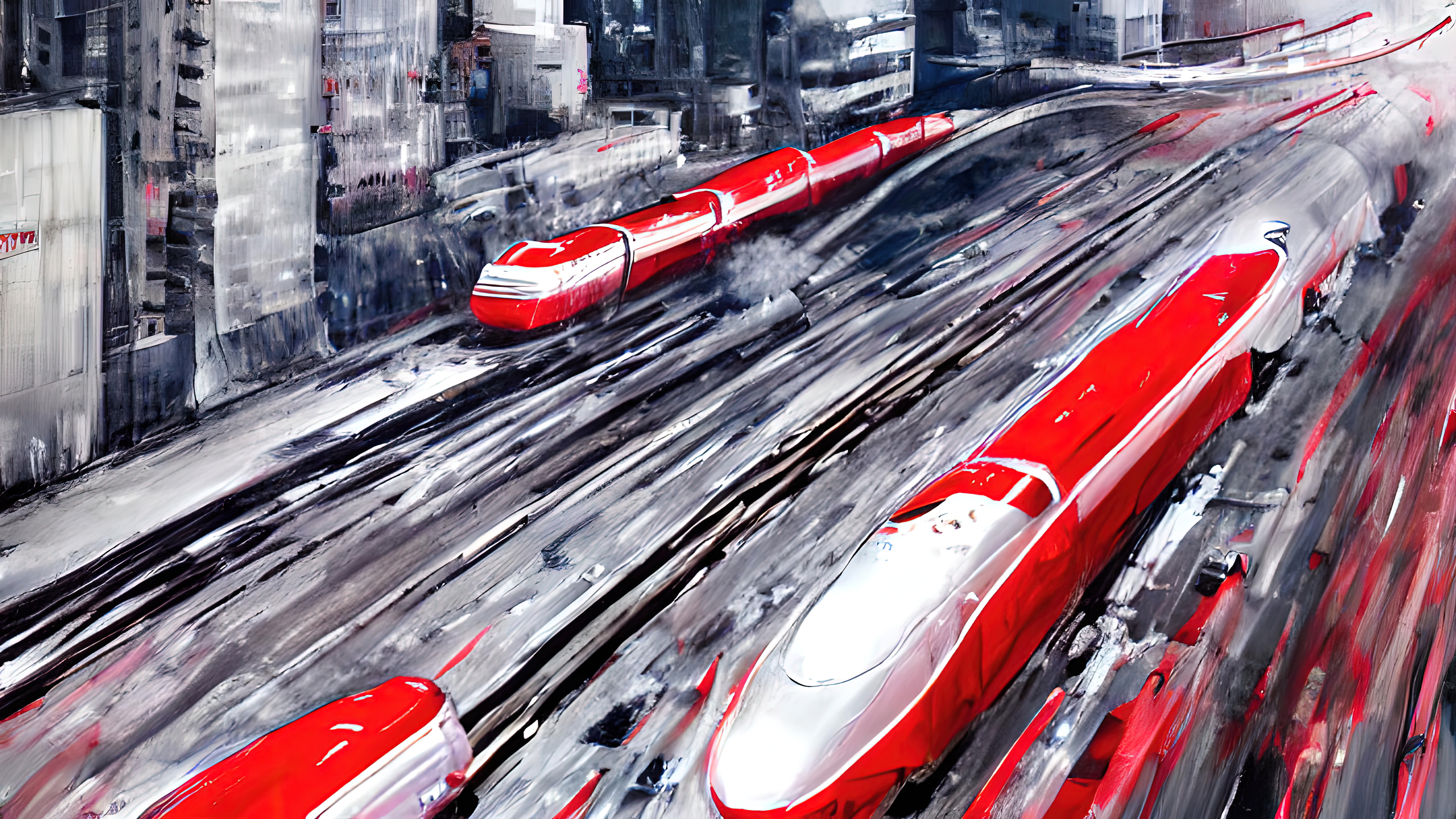 It is the year 1010AH (After Humanity). We are long gone. But life continues. The autonomous trains, buses, and cars created by us have become a new species that calls itself Mobility. Seasons of Mobility was created in the aesthetic tradition of wabi-sabi, which identifies beauty in the imperfect, the impermanent, and the incomplete. The colours and scenes invoke the four seasons across a full year. Each piece reflects everyday life in a future that is both familiar and surreal.