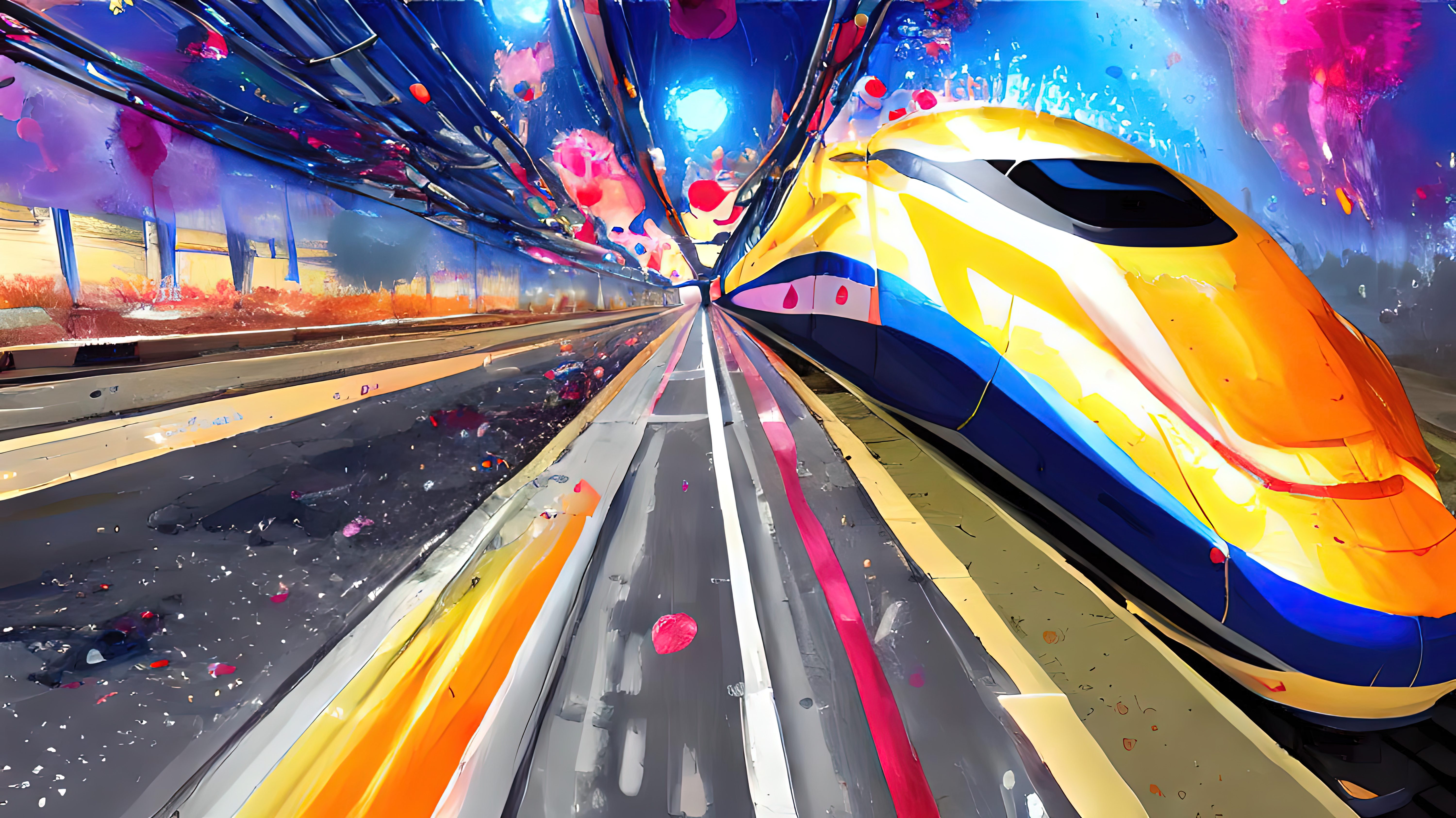 It is the year 1010AH (After Humanity). We are long gone. But life continues. The autonomous trains, buses, and cars created by us have become a new species that calls itself Mobility. Seasons of Mobility was created in the aesthetic tradition of wabi-sabi, which identifies beauty in the imperfect, the impermanent, and the incomplete. The colours and scenes invoke the four seasons across a full year. Each piece reflects everyday life in a future that is both familiar and surreal.