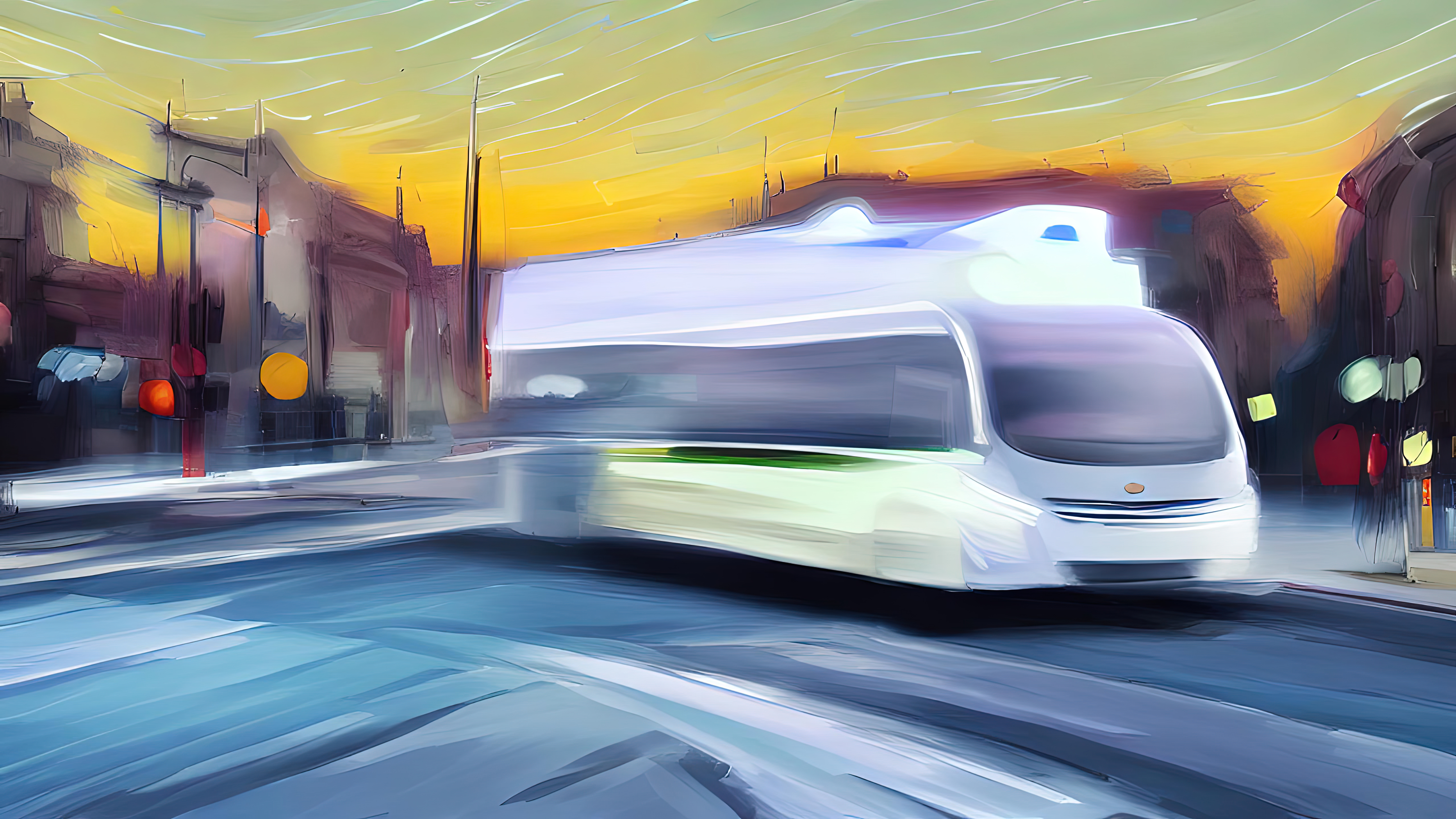 It is the year 1010AH (After Humanity). We are long gone. But life continues. The autonomous trains, buses, and cars created by us have become a new species that calls itself Mobility. Seasons of Mobility was created in the aesthetic tradition of wabi-sabi, which identifies beauty in the imperfect, the impermanent, and the incomplete. The colours and scenes invoke the four seasons across a full year. Each piece reflects everyday life in a future that is both familiar and surreal.