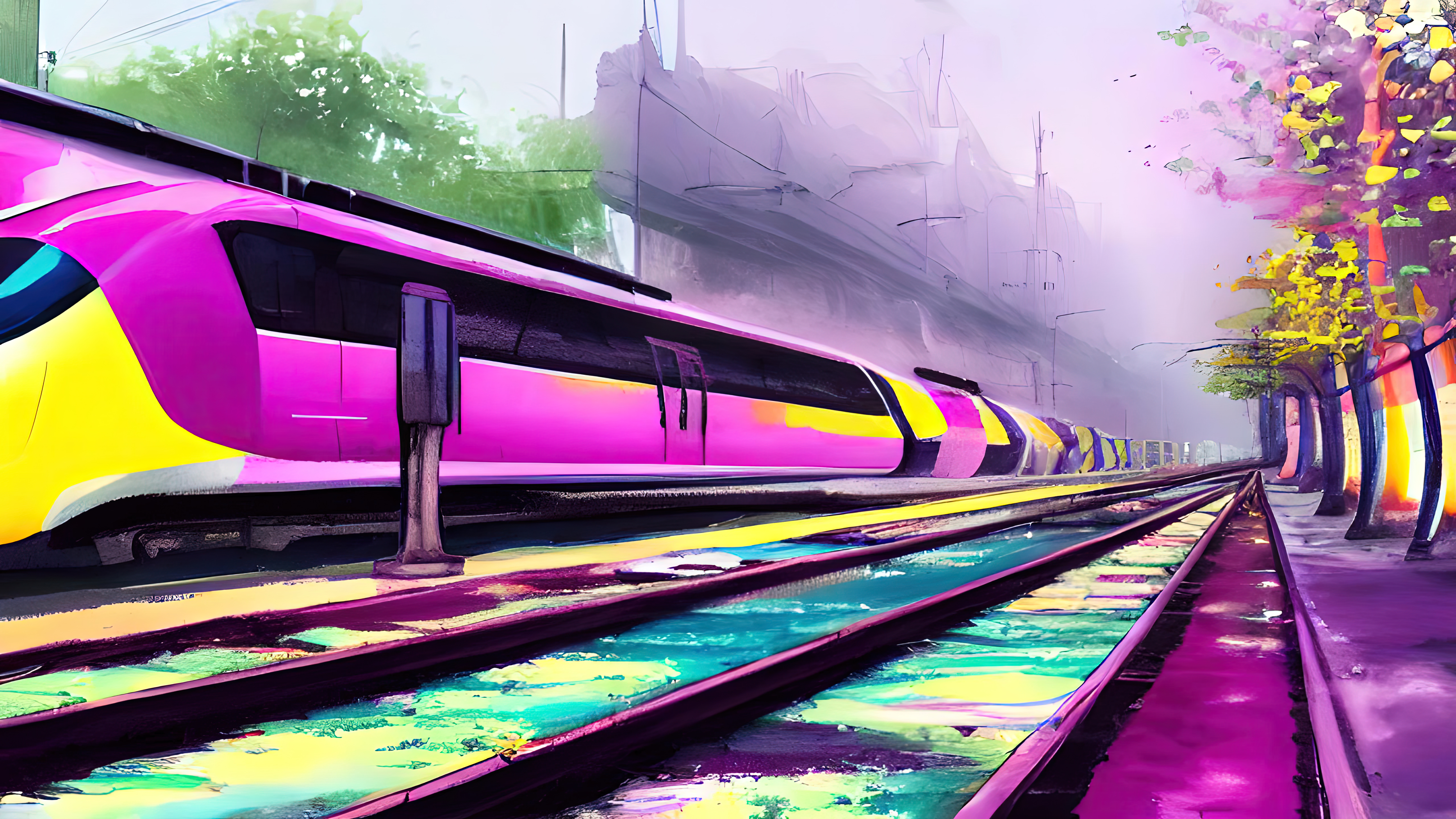 It is the year 1010AH (After Humanity). We are long gone. But life continues. The autonomous trains, buses, and cars created by us have become a new species that calls itself Mobility. Seasons of Mobility was created in the aesthetic tradition of wabi-sabi, which identifies beauty in the imperfect, the impermanent, and the incomplete. The colours and scenes invoke the four seasons across a full year. Each piece reflects everyday life in a future that is both familiar and surreal.